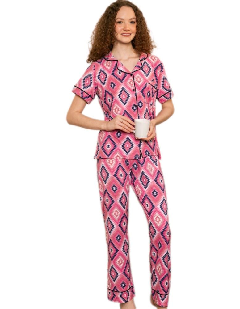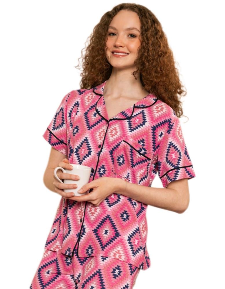 بيجامة قطن أزرار تصميم مضلع تويجي