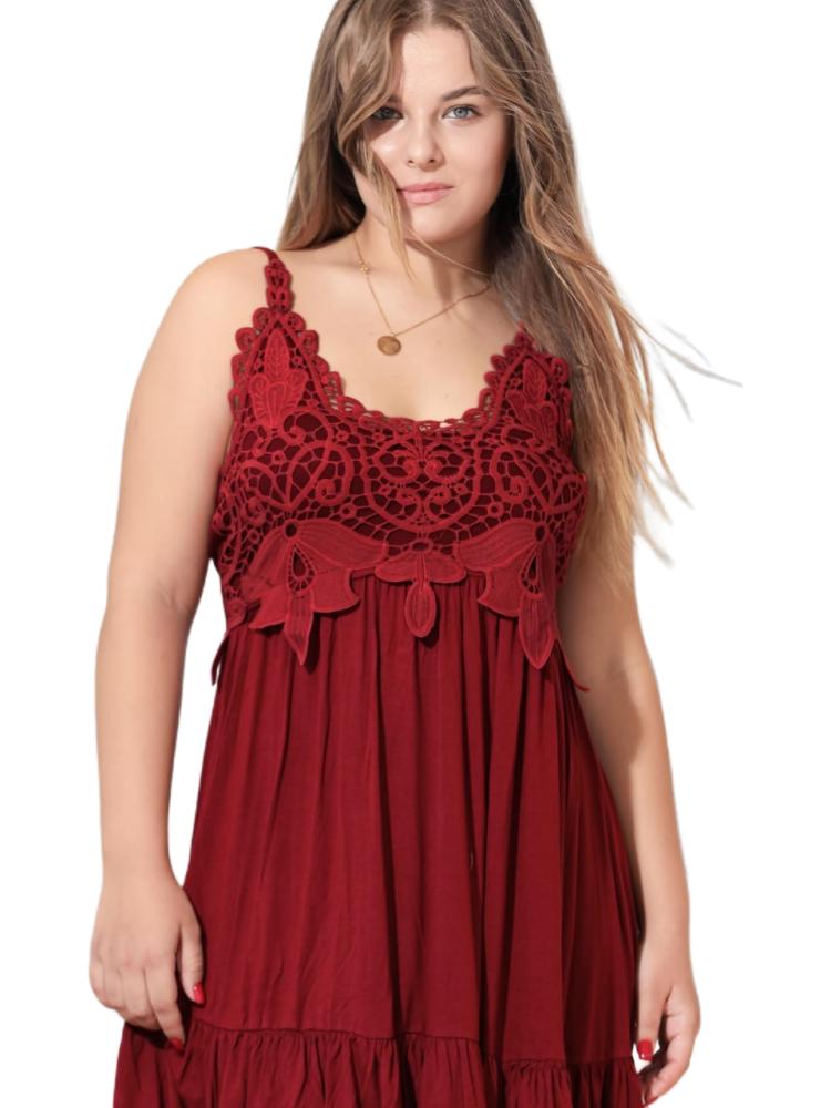 صُنِع هذا الفستان القطني القصير من خامة القطن المعالج لمزيد من النعومة عالي الجودة يمنحكِ إحساساً بالراحة طوال اليوم، خاصة في الأجواء الحارة، يتميز بتصميم عملي بحمّالات رفيعة وتزيين بالجوبير الراقي على الصدر مما يمنحه رقة وأناقة، بالإضافة إلى لونه العنابي العميق يضفي لمسة من الفخامة والرقي على الإطلالة مع القماش الخفيف، والمرن مما يجعله مناسبًا للارتداء اليومي داخل المنزل أو في أوقات الاسترخاء.
