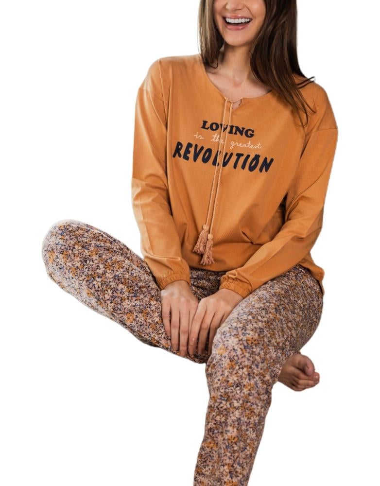 بيجامة نسائية من القطن الناعم بتصميم عصري و أكمام طويلة يعكس الذوق الراقي وثقة بالنفس تملئ الأجواء